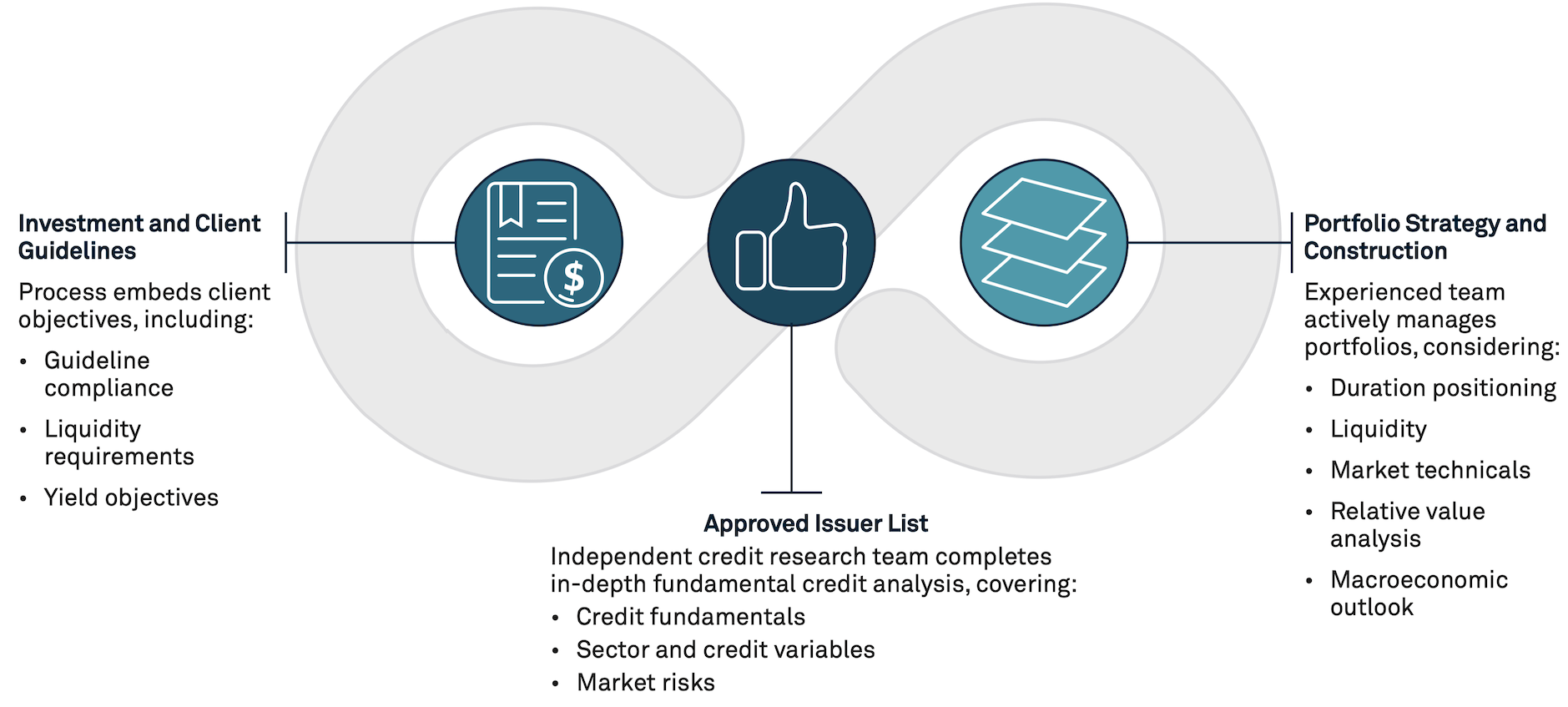 우리의 신용 프로세스는 머니마켓 적격 증권에 대한 단기 초점과 장기 전망을 통합합니다.